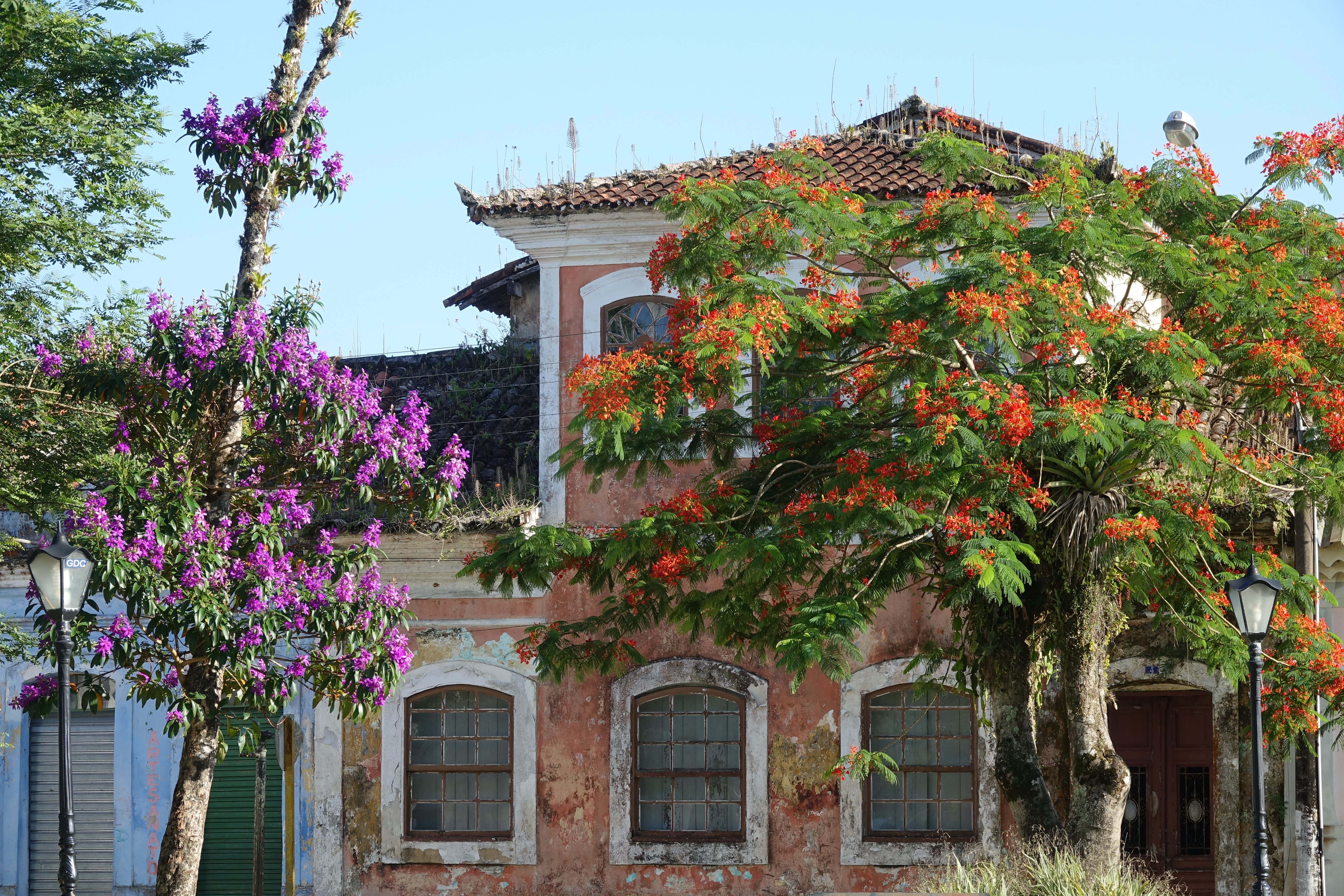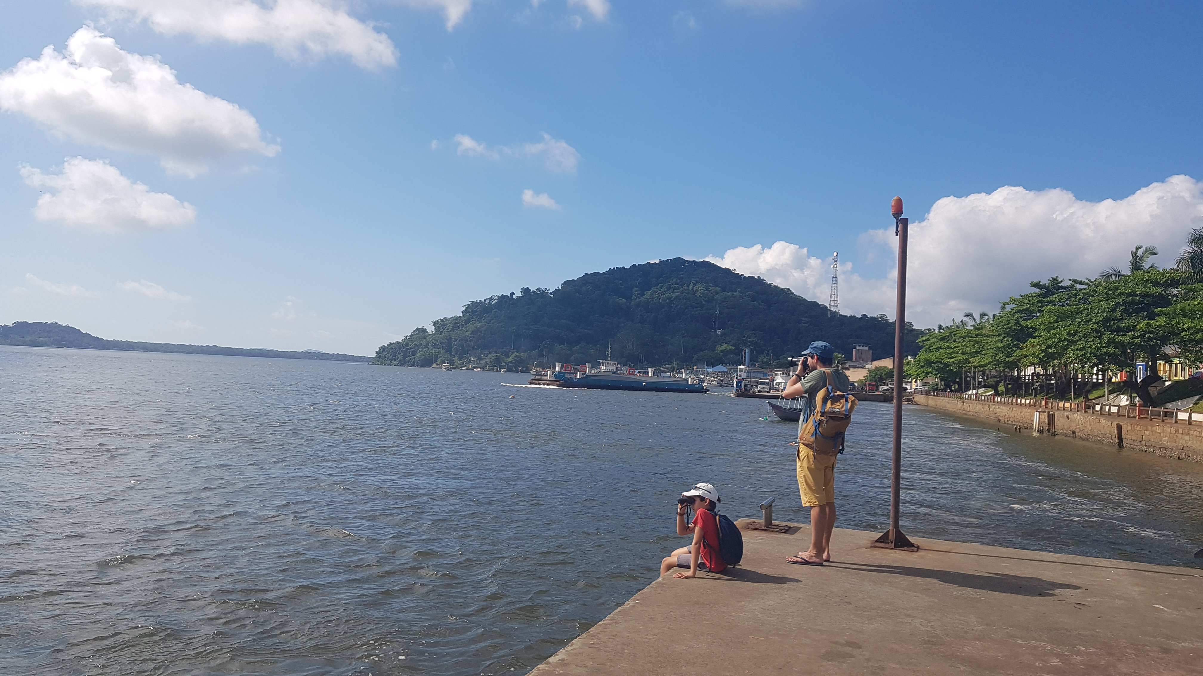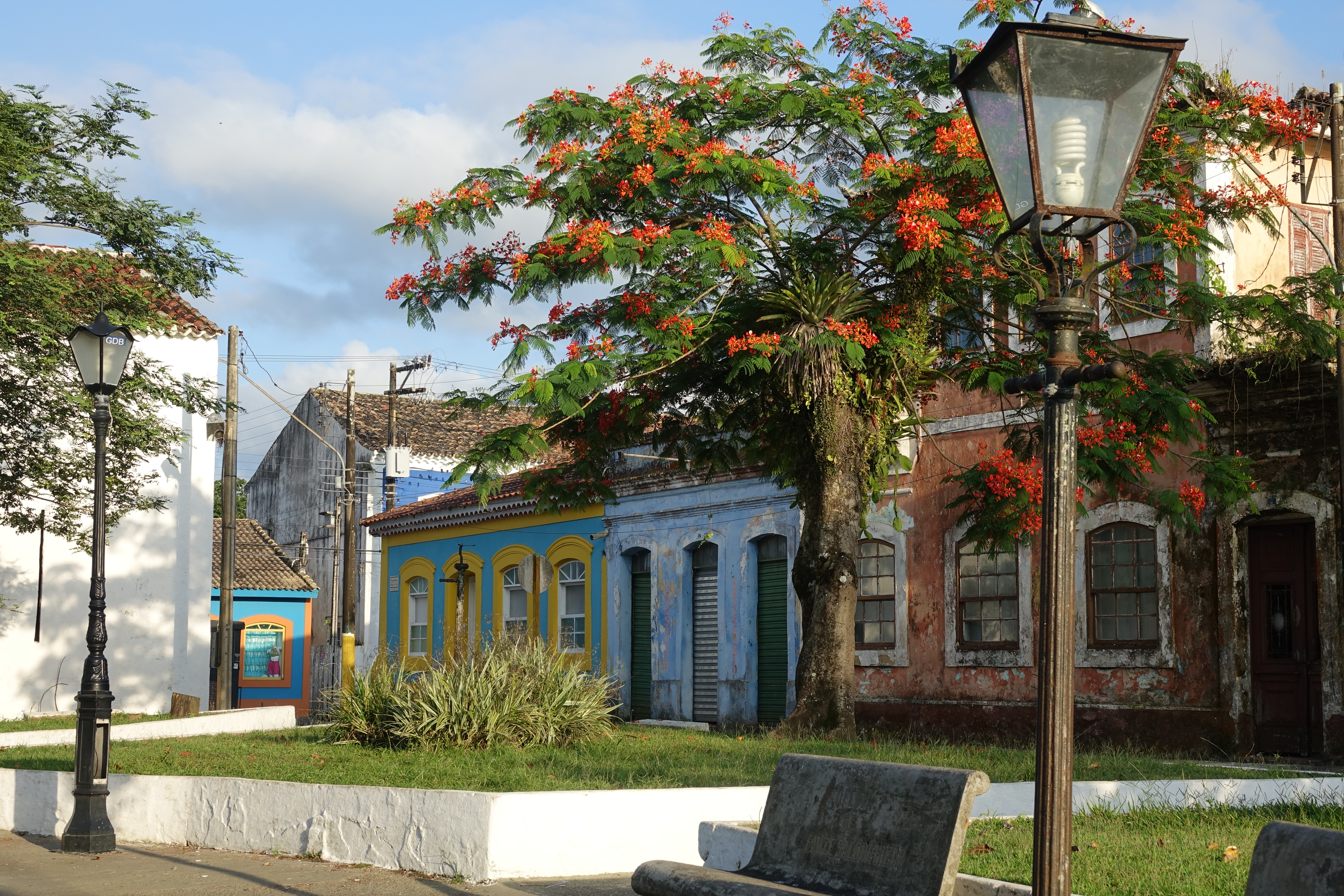 On est de suite dans l’ambiance: Cananéia, c’est le repos après le stress de la grande ville. On peut se détendre, s’y promener avec l’appareil photo en bandoulière et oublier la vigilance permanente du sac à dos. Le village nous plait avec ses vieilles façades coloniales défraîchies, sa petite place pleine de vie et ses arbres imposants. On s’habitue vite à la chaleur, à l’aide de quelques bières fraîches et de jus divers (celui d’ananas est le préféré de Mathias). On y mange bien aussi, même si on se rend vite compte que manger au restaurant peut revenir très cher (ici tout est relativement onéreux) et on commence, le voyage à peine débuté, à devoir faire attention si on veut arriver au bout de notre projet 😉