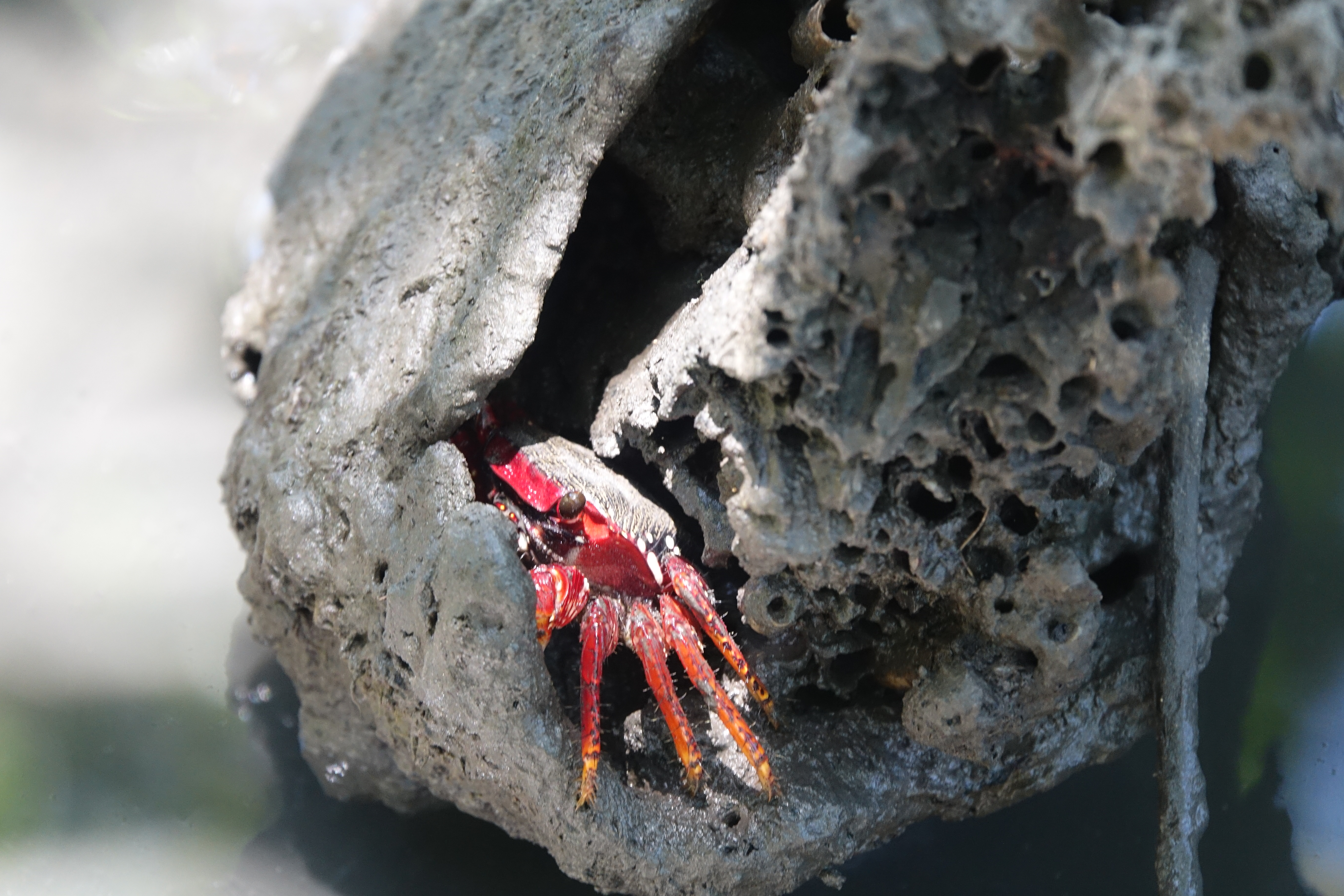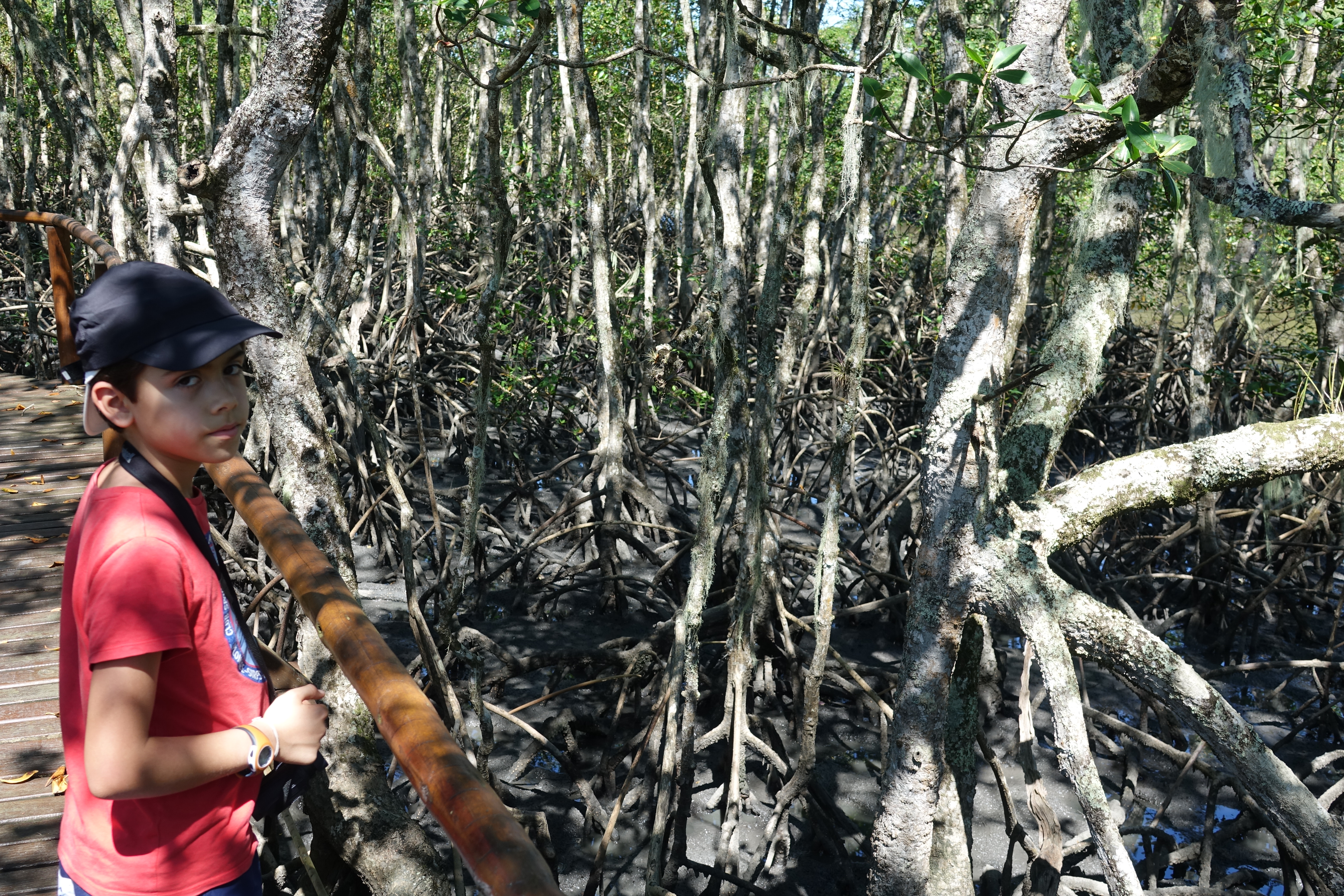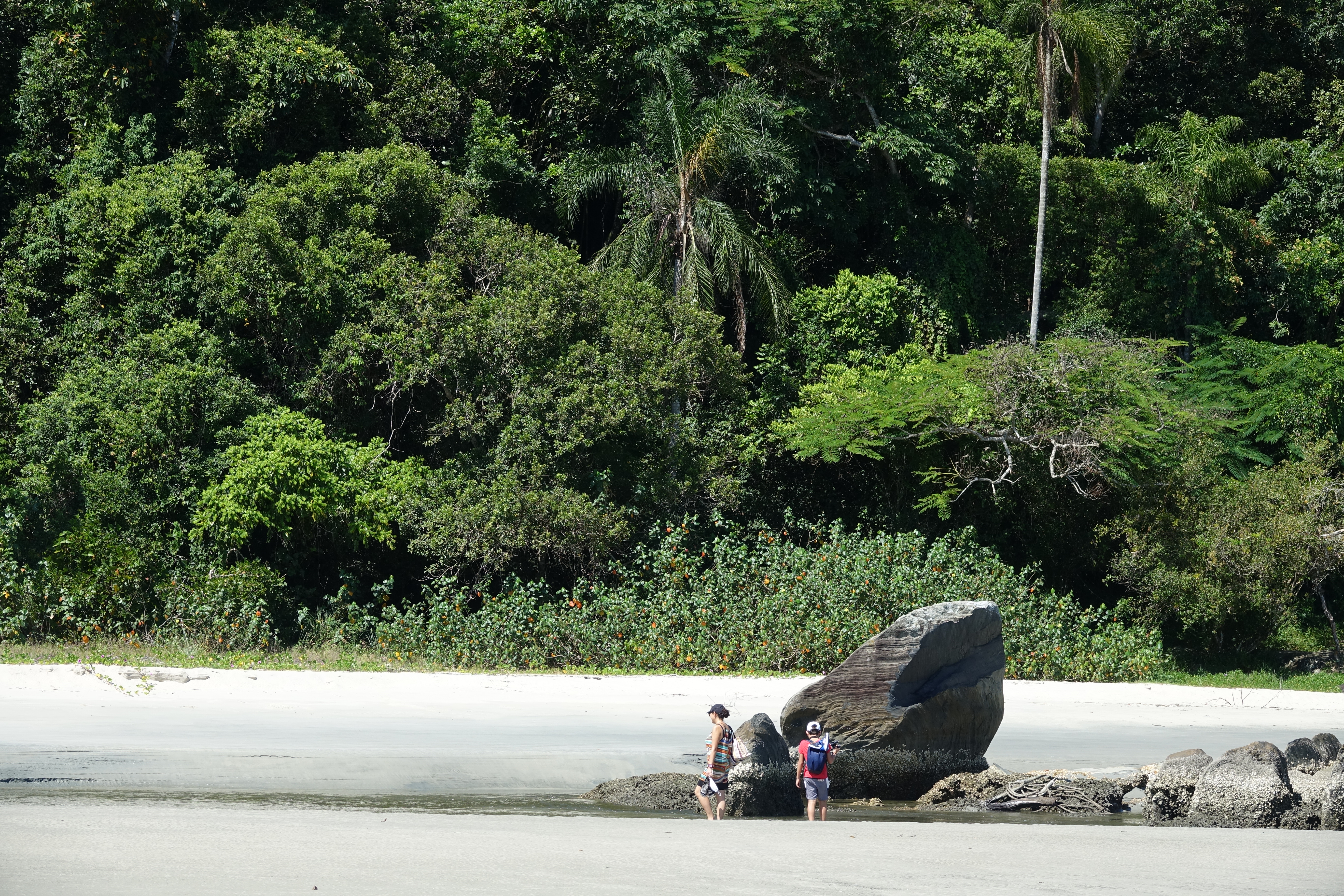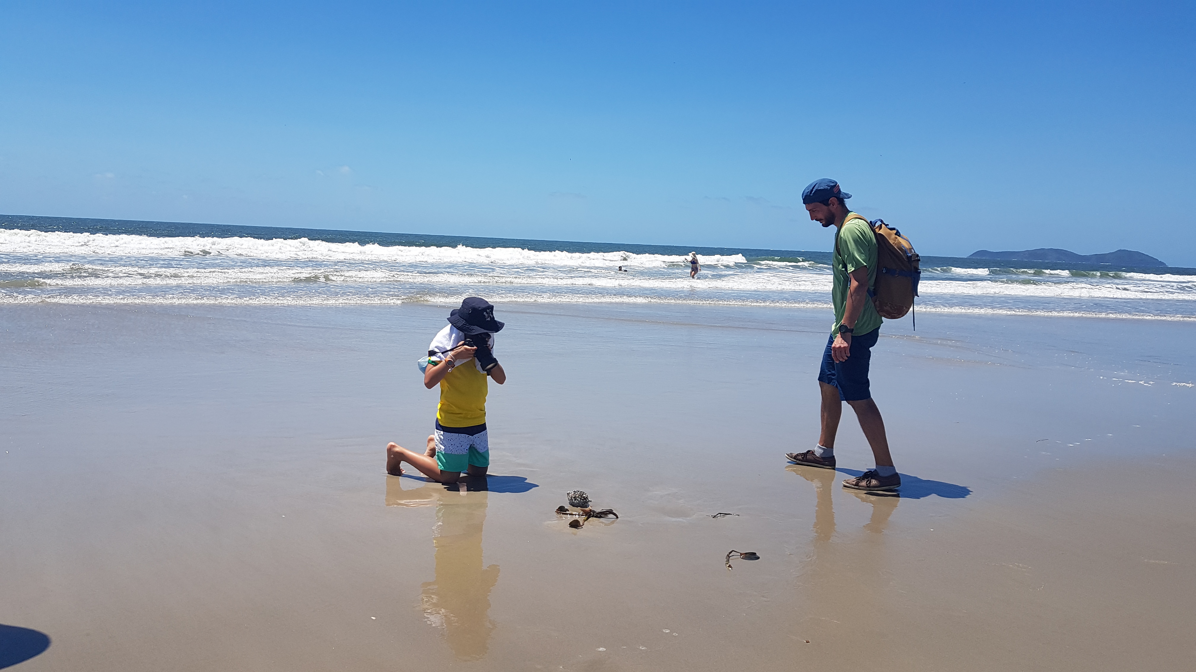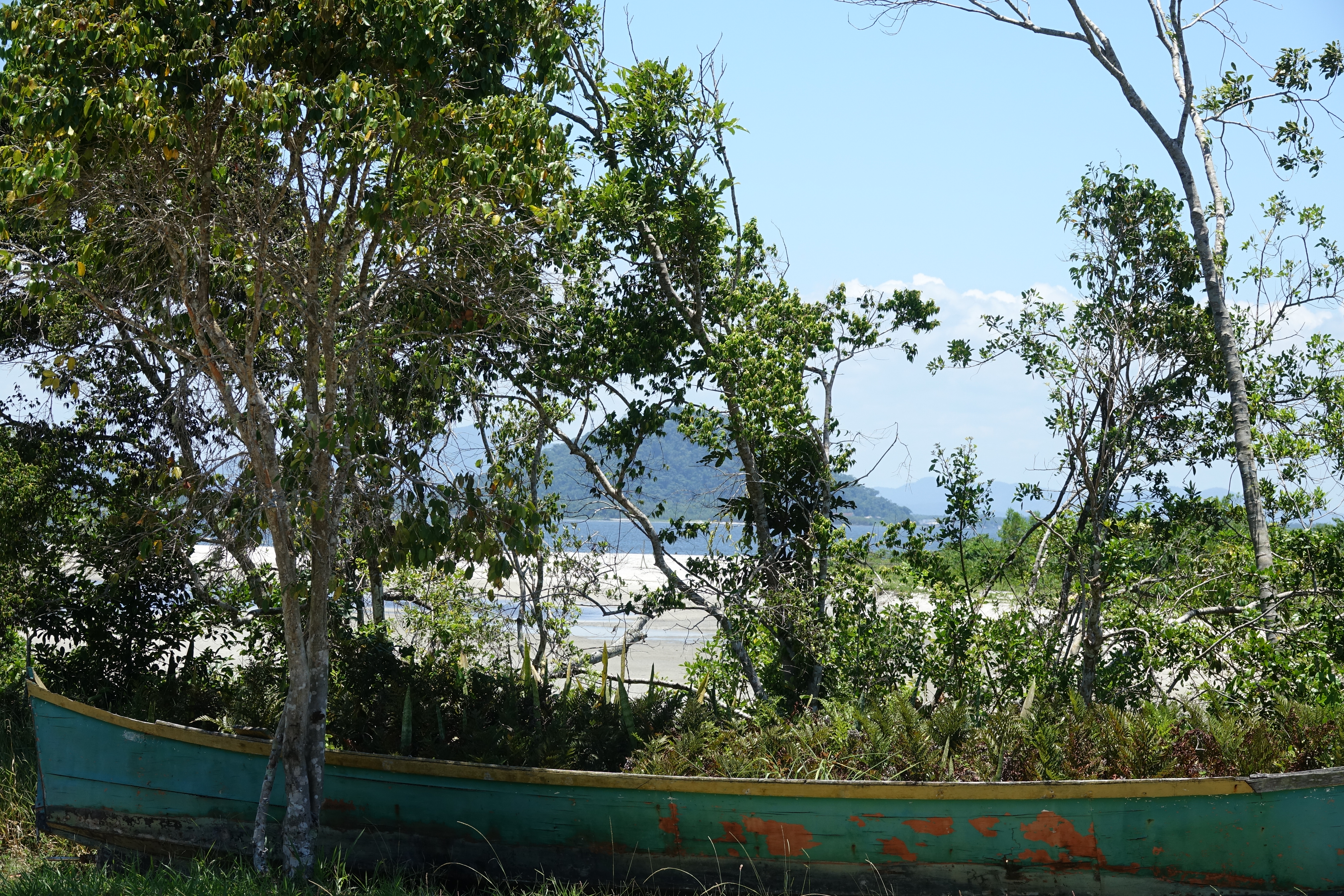 La nature est omniprésente, c’est un fait: Les arbres sont beaux, les oiseaux colorés, les orchidées et autres bromélias colonisent les câbles électriques ainsi que les façades des maisons… Mais ça n’est rien comparé à l’île voisine, Ilha do Cardoso, classée parc national et donc très protégée. Recouverte d’une forêt tropicale de bord de mer (Mata Atlántica) ainsi que de mangrove, nous aurons la chance en y allant de croiser la route de dauphins, venus saluer notre bateau! Quelle émotion! Nous aurons même la chance avec Mathias de les voir évoluer à moins de 10m de nous lors de notre dernier bain de mer, non sans une certaine appréhension ! Nous aurons aussi loisir d’observer une multitude de crabes de mangrove ainsi que des oiseaux. Nous aurions souhaité pouvoir approfondir notre visite de l’île et randonner un peu plus mais ça n’a malheureusement pas été possible (nous étions attendus à Curitiba). Il nous faudra pour cela revenir…