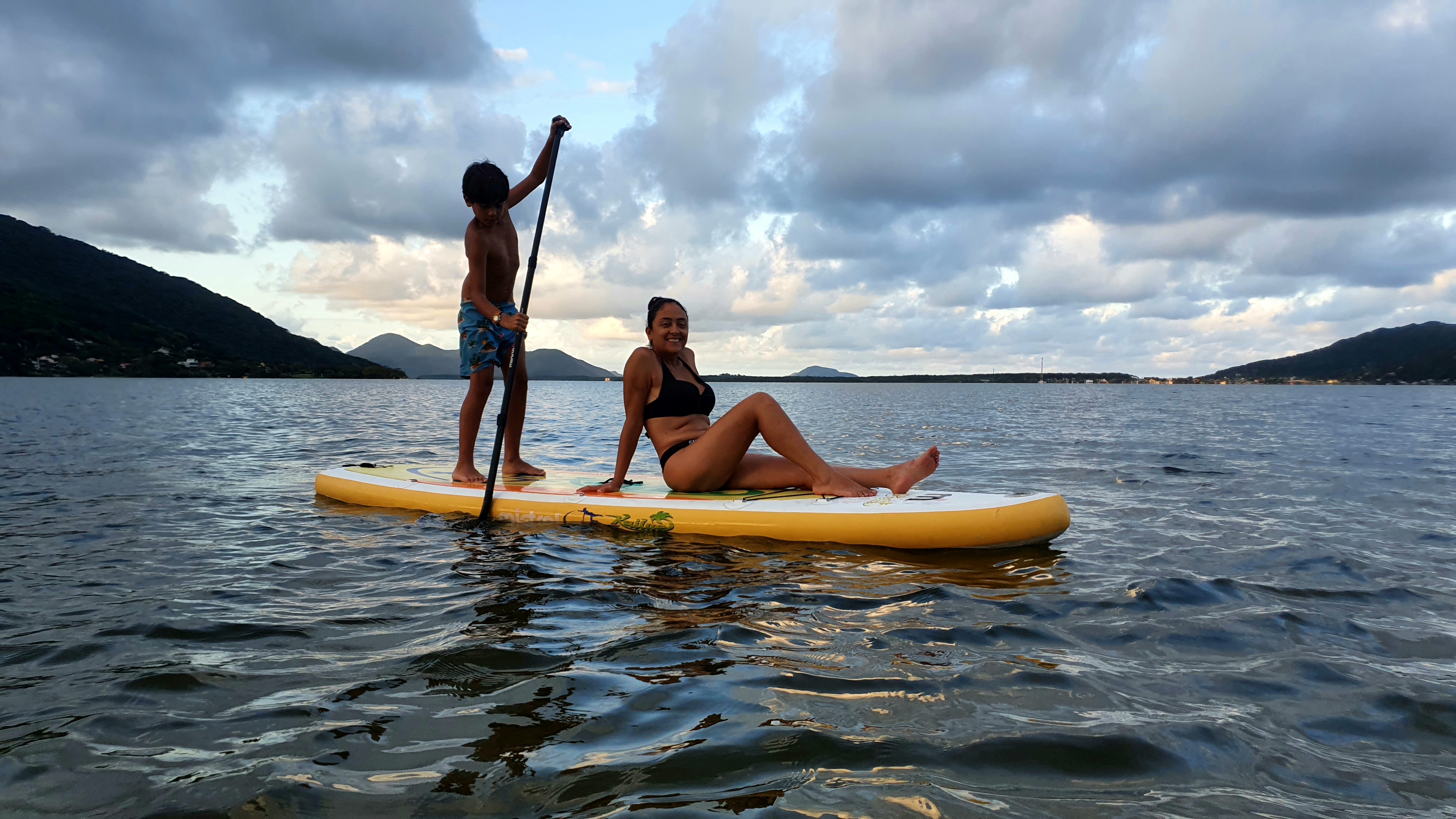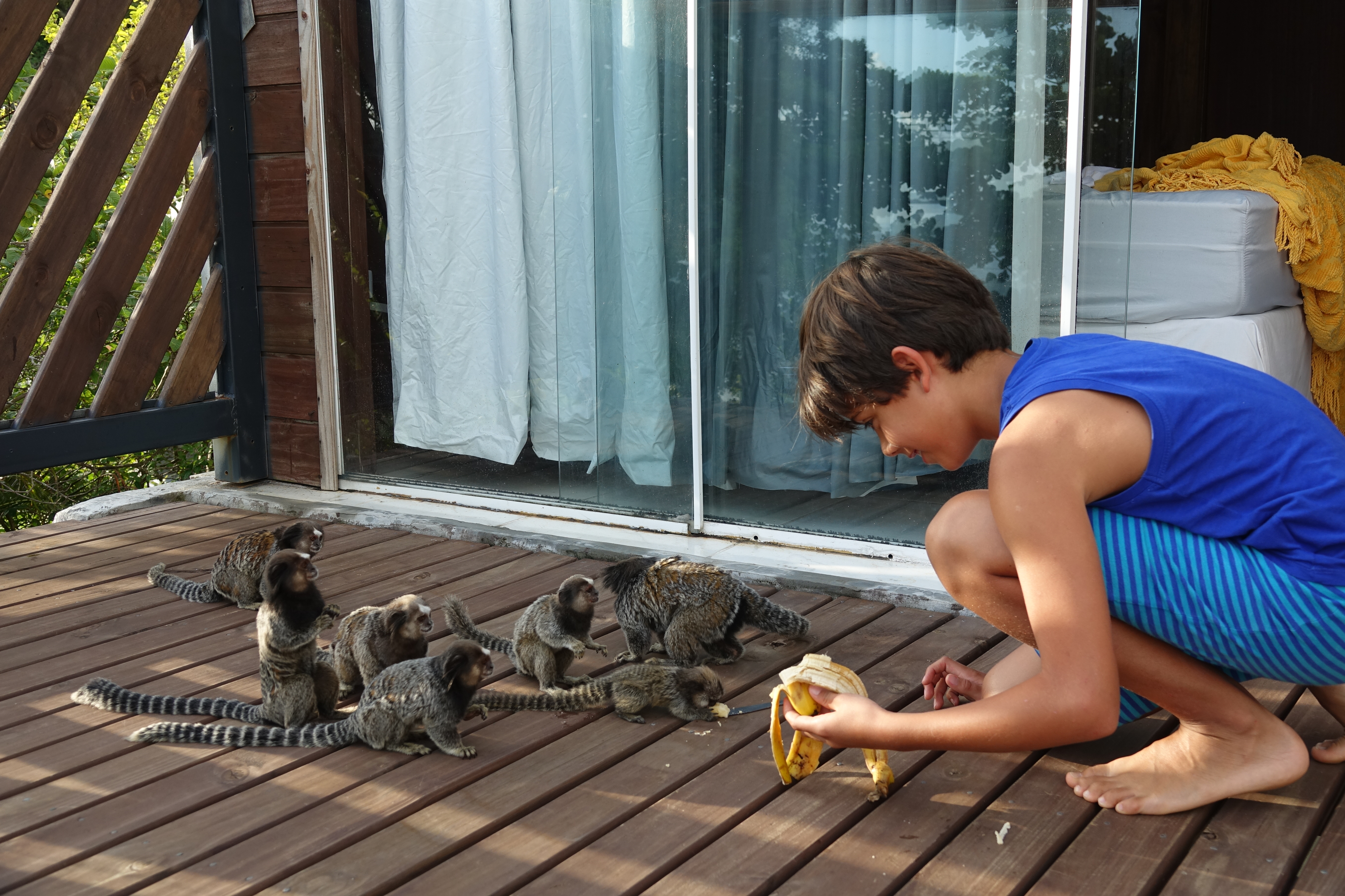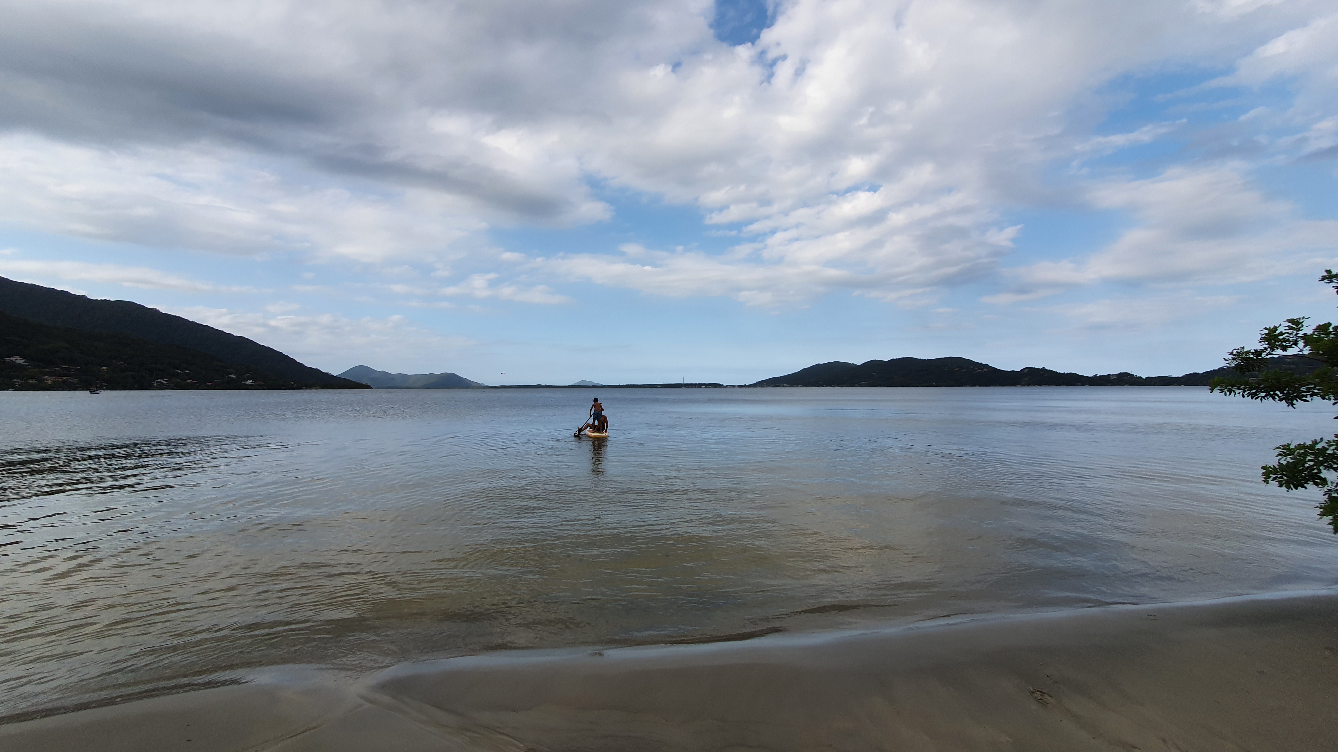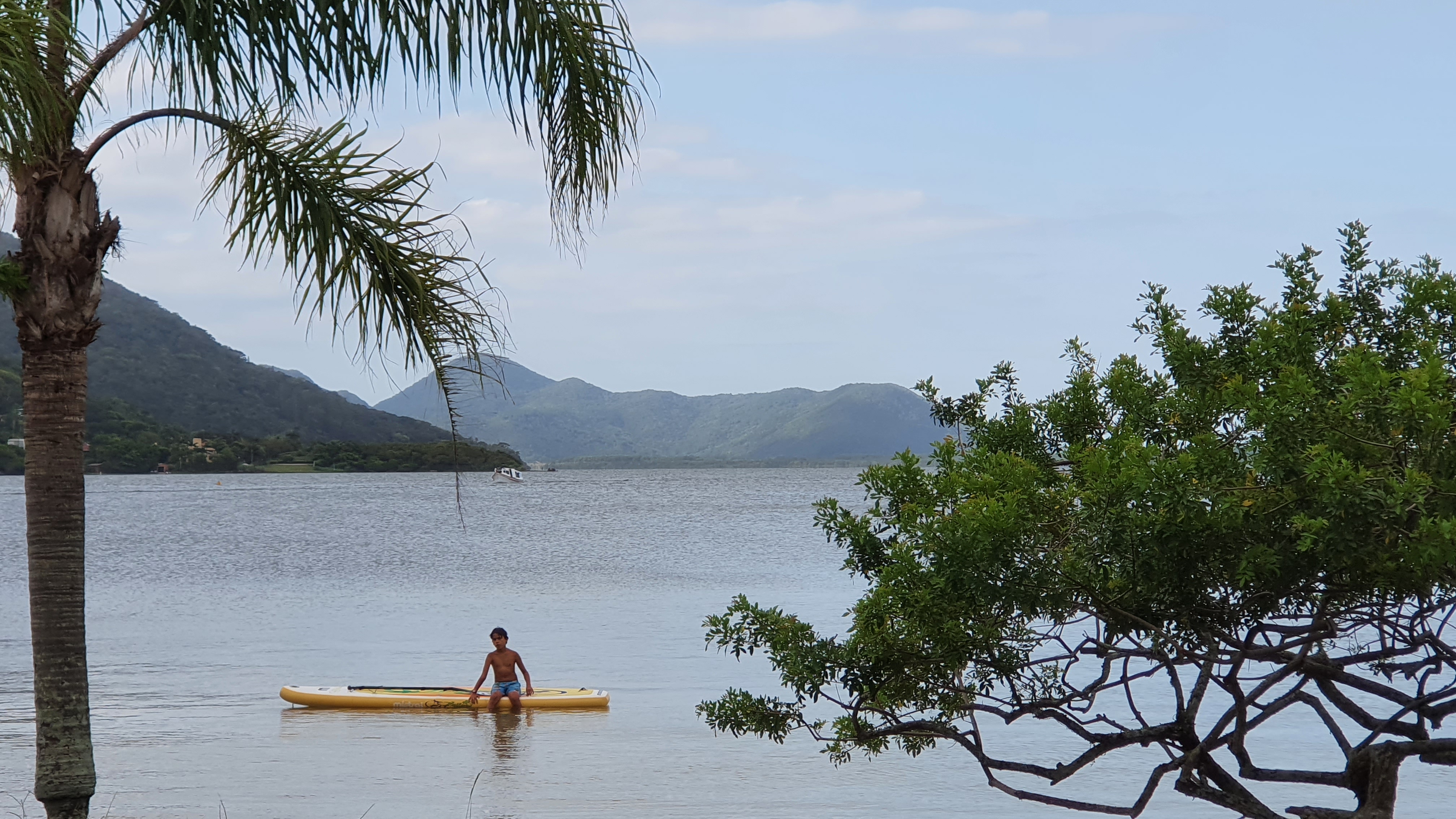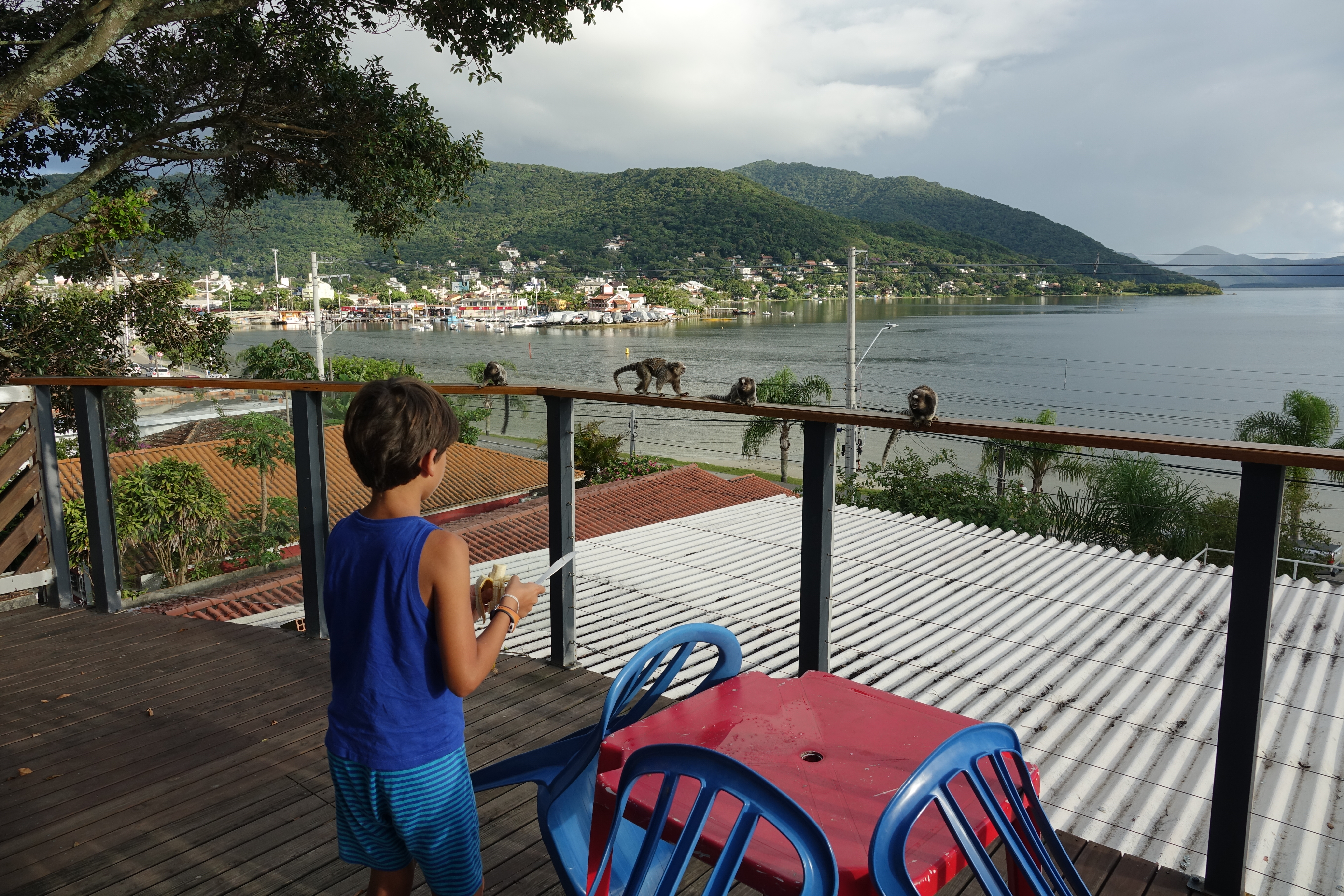L’arrivée sur cette île n’est pas des plus attractive: on traverse en premier lieu une immense zone urbaine sur le continent avant d’être accueilli à la sortie du pont par une cité de gratte-ciels. Pas vraiment le paradis que j’espérai… Je vais cependant rapidement retrouver le sourire, sitôt sortis de cette ville, en direction de notre petit paradis. Sur les conseils d’amis, nous avons trouvé un logement au milieu de l’île, en bordure du lac supérieur, à deux pas d’une petite ville très animée: Lagoa da Conceição. C’est donc à pieds que nous allons faire nos courses, manger au resto ou simplement trainer dans les bars, au gré de nos envies. Il faut dire que notre petit appartement, bien qu’assez rustique invite au repos et à la contemplation: nous sommes en hauteur, avec une superbe vue sur le lac, les petits singes « saguis » viennent quémander quelques morceaux de bananes, nous nous sentons presque isolés du haut de notre belvédère. En plus de cela, notre hôte a mis à notre disposition un paddle-board, autant dire qu’on en aura bien profité !