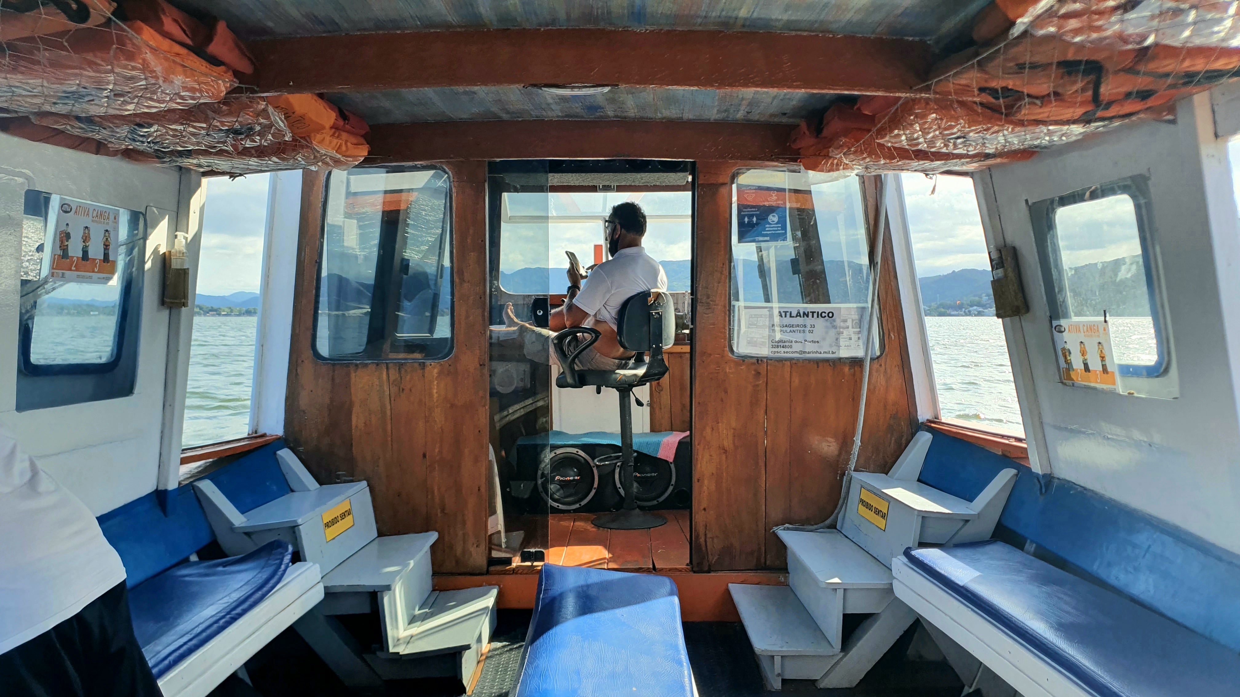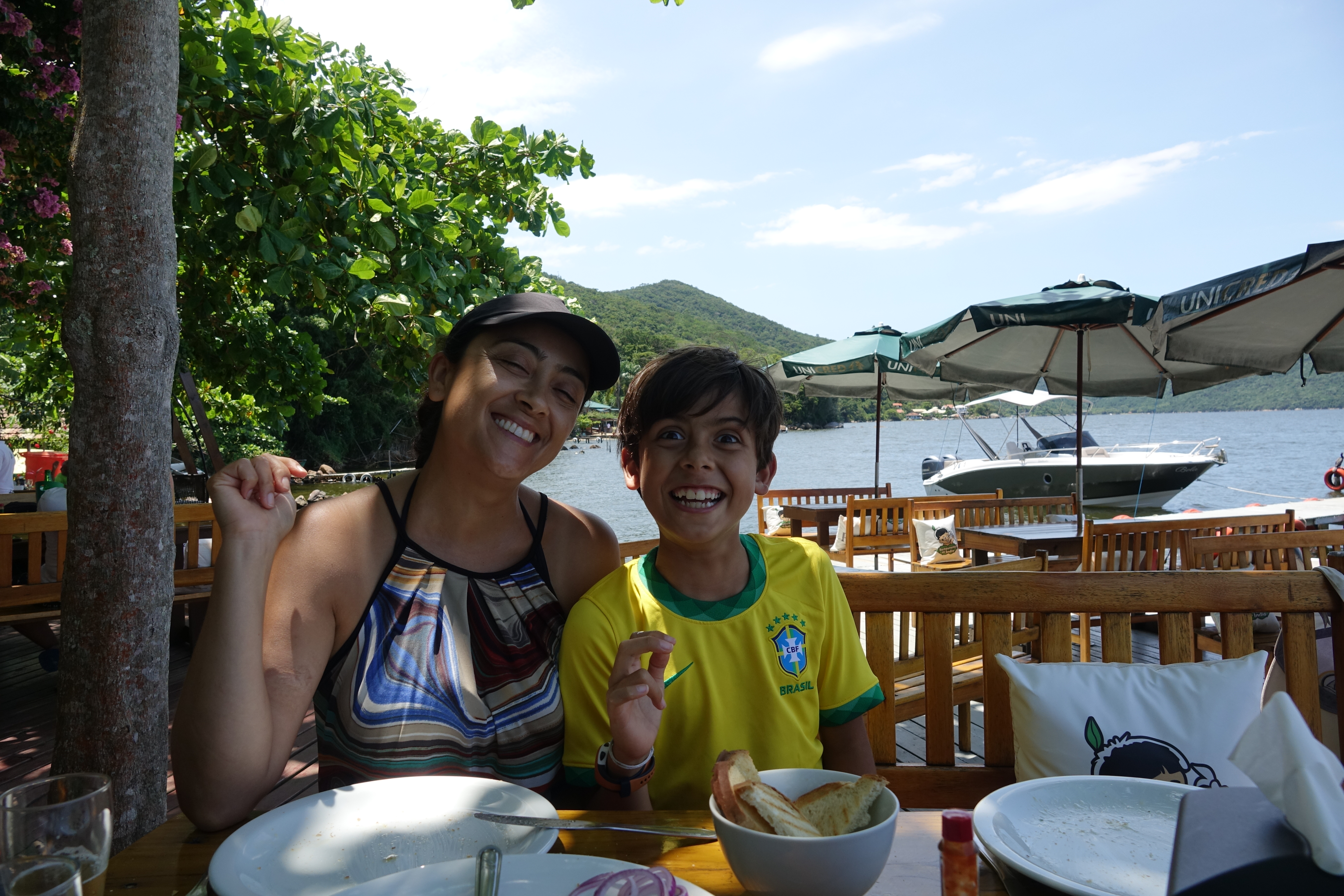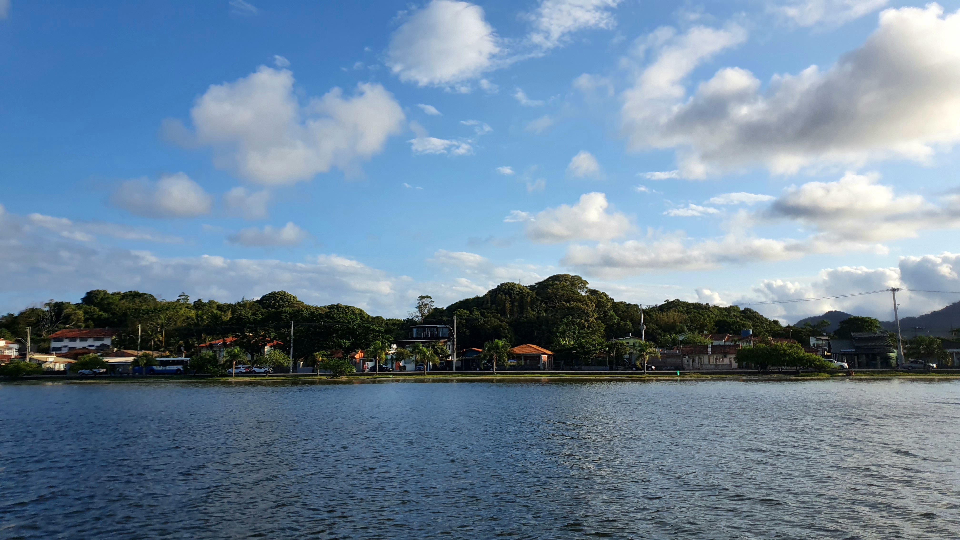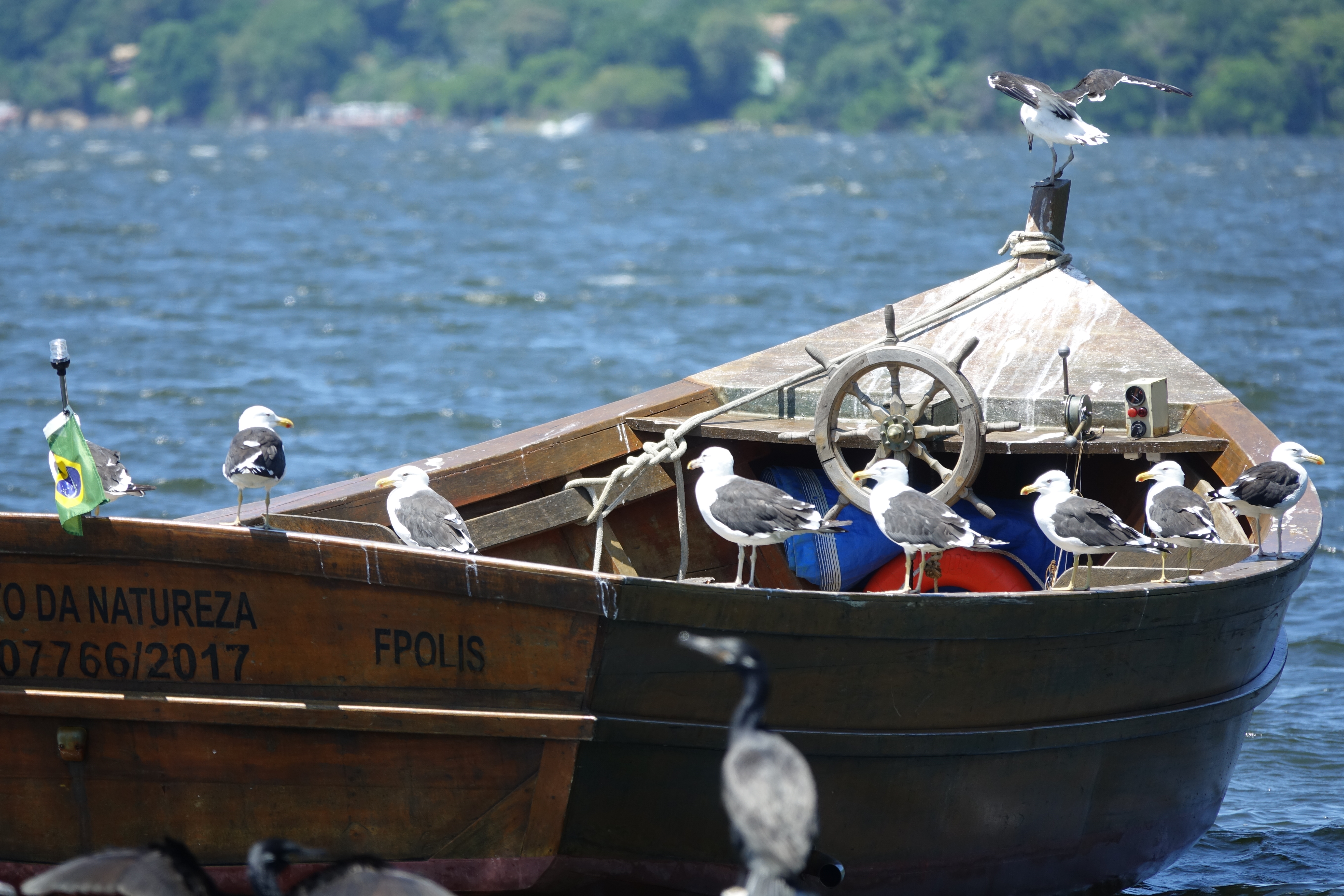 Barra do Lagoa, c’est aussi et surtout, notre coin préféré, à l’écart des plages et des hordes de touristes: l’embouchure du canal reliant les lacs à l’océan. Il suffit de quitter l’axe routier principal pour aussitôt se sentir isolés. Mieux, depuis notre petit appartement, un autre bateau-bus nous débarque directement sur le ponton de Maria & Maria, le meilleur restaurant du coin selon notre logeur, et on doit bien avouer qu’on a adoré! Pour la petite histoire, Maria a commencé par vendre du poisson frit dans son petit boui-boui, et les années passant, a réussi à le convertir en véritable restaurant… Une belle adresse donc, tant par la qualité de la cuisine qui y est présentée que par le cadre beau et reposant. Les maisons de l’autre coté de la rivière sont relativement isolées, les seules possibilités d’accès étant un passerelle piétonne ou la barque. Pas de véhicule donc, et la vision idyllique depuis notre table de ces belles maisons agrippées à la colline, dont on se demande comment elles y ont été construites. L’embouchure présenterai un autre intérêt, méconnu des touristes et donc préservé: on peut y plonger en apnée et y apercevoir des tortues au pied d’un énorme rocher, à environ 4m de fond (on sort de table et on plonge en face du ponton 😉 ). Il faut cependant que la marée soit montante pour que les eaux y soient limpides. Nous n’avons jamais pu arriver au bon moment et n’avons par conséquent pas pu profiter du spectacle promis.