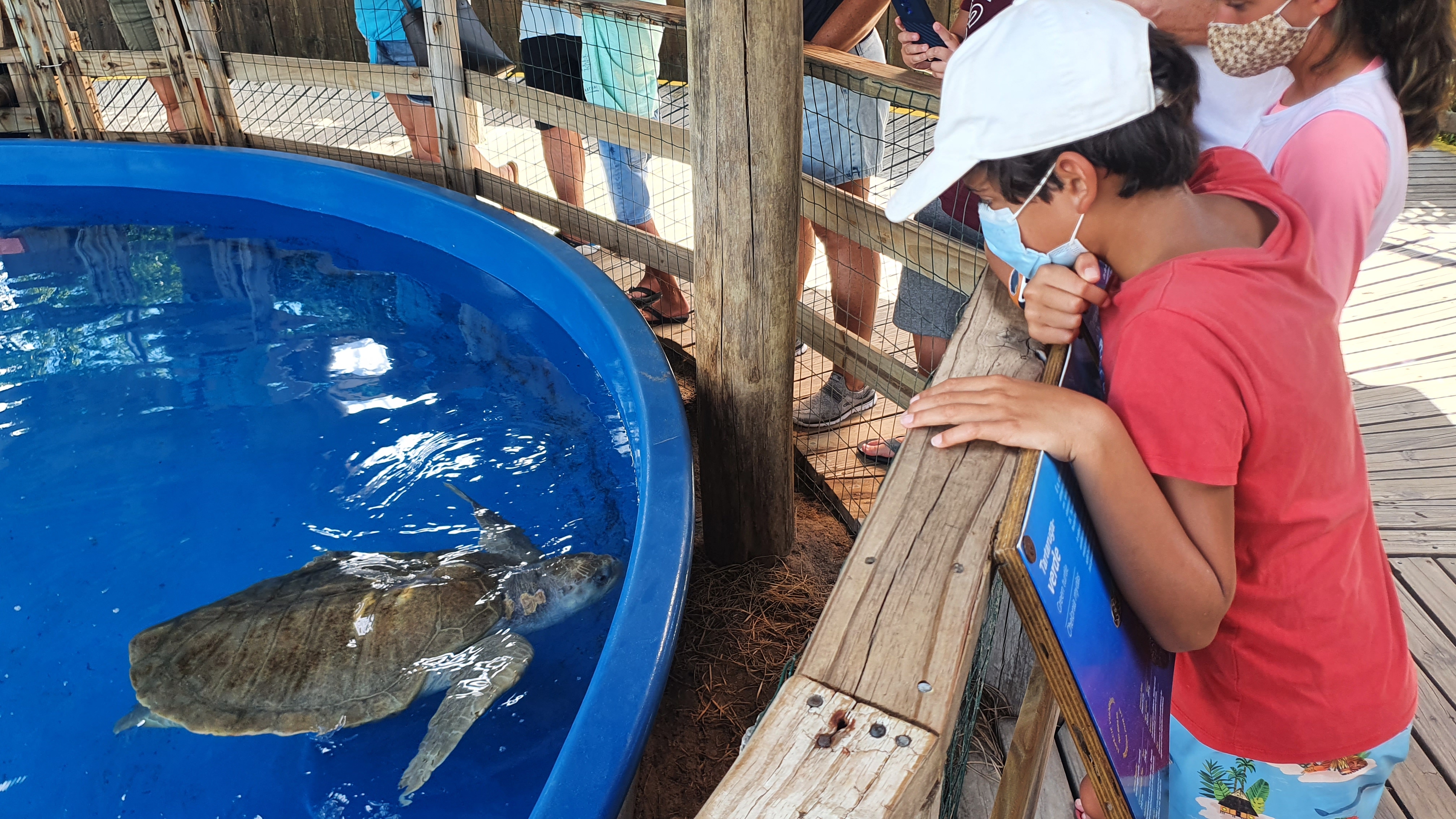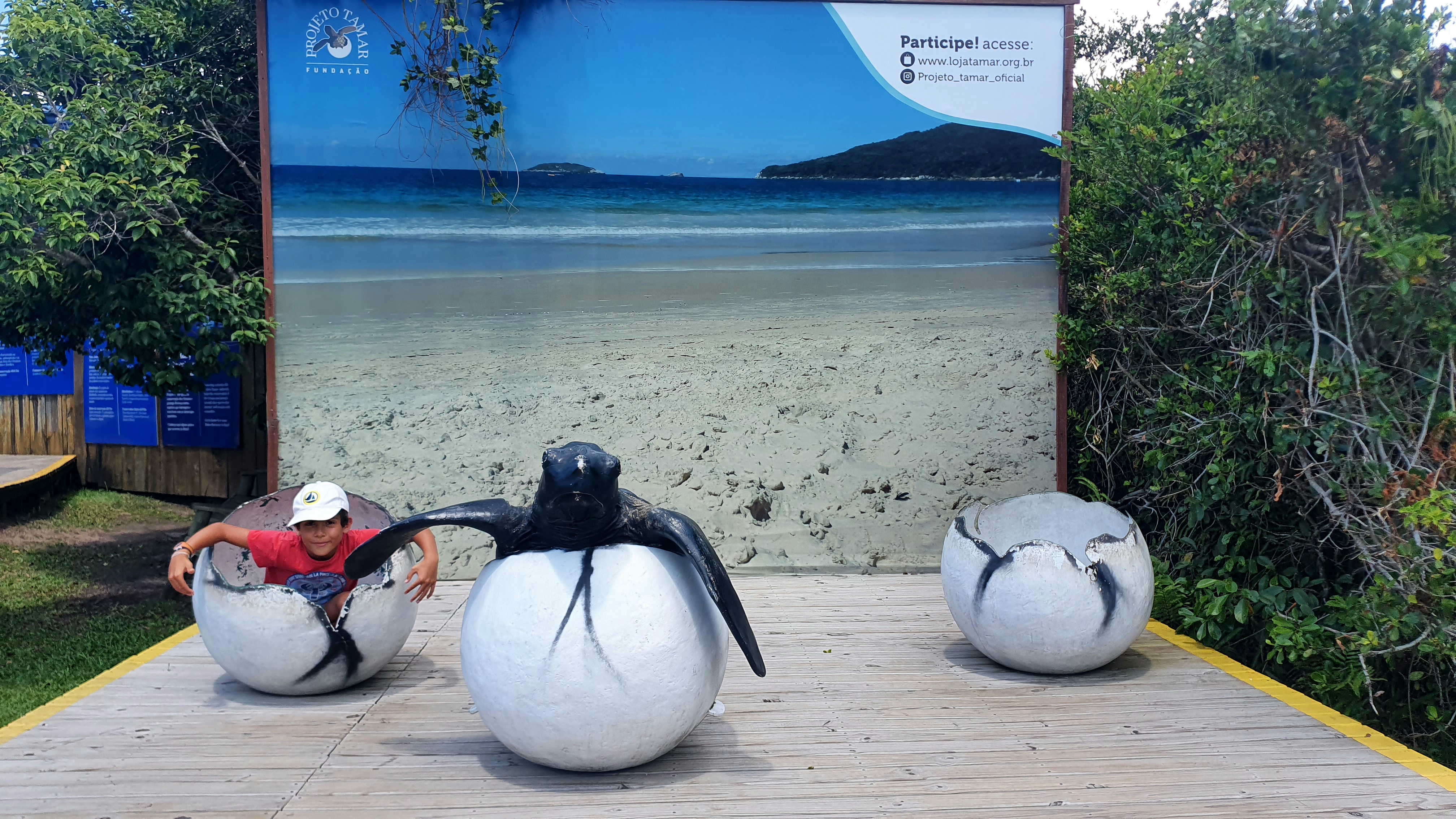 Dans le même esprit, nous étions très proches de Barra do Lagoa, le village situé sur la côte Est, face à l’océan, où nous avons enfin pu surfer avec Mathias ! Le village en lui-même n’a pas vraiment de charme, accessible par la route, mais reste relativement calme en cette saison. On peut facilement siroter une caïpi sur la plage, ou bien marcher quelques minutes sur celle-ci et rapidement se retrouver sur une zone plus sauvage et plus tranquille. Barra do Lagoa abrite aussi, pour notre plus grand bonheur (surtout celui de Mathias), une antenne de la fondation TAMAR, qui oeuvre à la protection des tortues marines du littoral (voir article de Mathias à ce sujet). Mathias adorant les tortues, notre cadeau d’anniversaire était tout trouvé: une matinée de visite en immersion avec les soigneurs, tant du coté touristique que du coté de l’infirmerie. Une très riche expérience, et même si les problématiques environnementales nous sont relativement familières, notamment en ce qui concerne les tortues marines, c’était très triste et impressionnant de voir les désastres du comportement de l’homme sur cette belle nature. Mais très émouvant aussi de voir ces quelques tortues rescapées d’aussi près, la beauté et la sagesse dégagées par cet animal.
